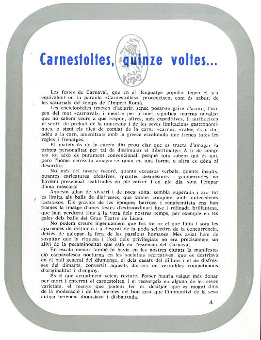 És el títol del fanzine publicitari carnavalesc que llençava anualment, a partir de l’edició del 73’, la discoteca Kipps a les vigílies del Carnaval.